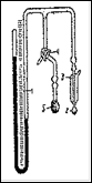 Прибор для определения удельной поверхности (рис.8) состоит из ртутного манометра 1 со шкалой, длина которого больше 80 см. Одна трубка манометра запаивается под вакуумом, а к другой присоединяется на шлифе ампула 2 с навеской образца. Трубка между шлифом и ампулой заключена в вакуумную рубашку 3, которая позволяет поддерживать постоянным охлаждаемый объем при погружении ампулы в жидкий азот. От трубки, соединяющей ампулу с манометром, сделан отвод с трехходовым краном 4. Вторая трубка от крана сообщается с атмосферой, а к третьей присоединена на шлифе ампула 5, содержащая несколько граммов активного угля.