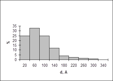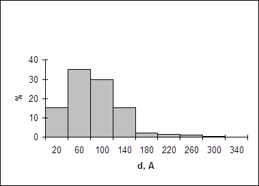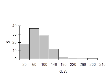 Из диаграммы следует, что наибольшее число частиц имеют размер 20-100 Å.