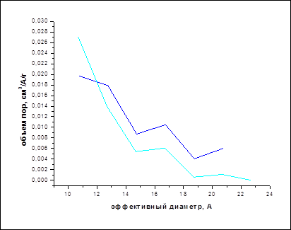 На рис.20 представлено распределение объема пор по значению эффективных радиусов. Площадь под кривой равна общему объему пор.