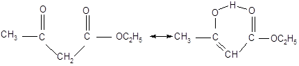 Ацетоуксусный эфир обычно существует в виде равновесной смеси кетонного и енольного таутомеров в отношении 92,5 к 7,5.