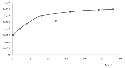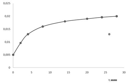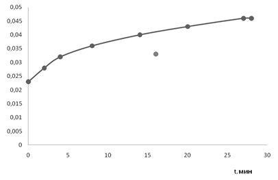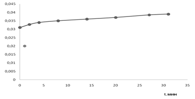 Рисунок 6 – Изучение кинетики растворения бензоата свинца в растворе бензойной кислоты в этиленгликоле (концентрация кислоты 0,35 моль/л), t= 22ºC