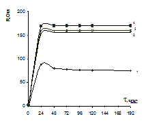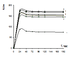 Ингибирование поверхности металла на катодных и анодных участках подразумевает существование определенной разности потенциалов между ними и, следовательно, протекание электрического тока. Этот ток, называемый коррозионным, эквивалентен количеству прокорродировавшего металла. В процессе коррозии потенциалы катодных и анодных участков не остаются постоянными, наблюдается поляризация, следствием которой является сближение потенциалов катода и анода и уменьшение коррозионного тока. Исследование антикоррозионных свойств ингибиторов заключается в экспериментальном изучении поляризационного сопротивления стального электрода или зонда в растворе фона и в присутствии различных ингибиторов. Все экспериментальные данные получены с использованием в качестве фона 3% ного раствора Na2SO4. На рис.1 (а, б), в качестве примера, приведены результаты измерений поляризационного сопротивления стального зонда в слабокислых средах, а также в присутствии ингибиторов: растворов полифосфата натрия, пирофосфата кальция, полиэлектролитов, а также двухкомпонентных ингибиторов полифосфат-унифлок, полифосфат-NaКМЦ, пирофосфат-NaКМЦ, пирофосфат-желатин. Из рис.1 видно, что введение в фоновый раствор индивидуальных ингибиторов увеличивает поляризационное сопротивление, а при введении двухкомпонентных смешанных ингибиторов наблюдается еще большее увеличение поляризационного сопротивления стального зонда. Такой результат указывает на резкое торможение электрохимического процесса и позволяет получить предварительные результаты об эффективности тех или иных ингибиторов.
