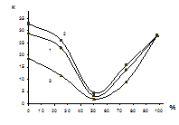 Рис. 3. Желатин-Na4P2O7 (1); NaКМЦ-Na4P2O7 (2); унифлок-Ca2P2O7 (3) Синг. =0,001%, рН=8,00.