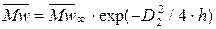 где F (V) – гель-хроматограмма всего полимерного образца; G (V, y) – функция приборного уширения; W (y) – гипотетическая хроматограмма, которая получалась бы если приборное уширение отсутствовало. В качестве эмпирической модели функции приборного уширения использовалась гауссова функция, так как при использовании такой модели решение уравнения Танга становится простым с математической точки зрения.