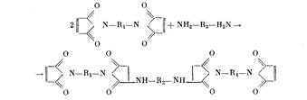 Обычно ограничиваются рассмотрением только этих двух реакций, ведущих к образованию сшитых поли-бис-малеимидаминов (ПБМИА). Однако при определенных условиях возможна и гомополимеризация по двойной связи Б МИ с образованием сшитого поли-бис-малеимида (ПБМИ). Для первой пары исследуемых систем