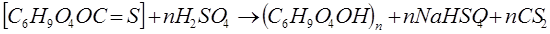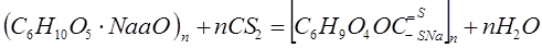 3. Ксантогенирование щелочной целлюлозы – обработка ее сероуглеродом в среде азота с целью получения растворимого в водном растворе полимера – ксантогената целлюлозы: