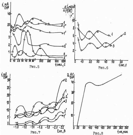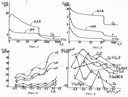 Материал подложки (Fe; Al, Ma.) электрода оказывает сильное влияние на кинетику внедрения иттрия. Как на начальном этапе поляризации, так и в стационарных условиях величина i для оксидированных электродов характеризуется рядом
