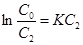 Интегрируя его и учитывая начальное условие (при t=0, C2=C02), получаем уравнение: