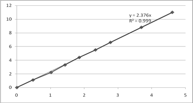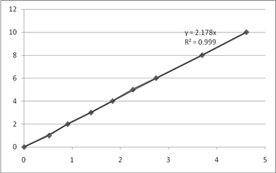 По данным таблицы 6 строим график зависимости логарифма начальных скоростей реакции от начальных концентраций А1 для опытов0,6,1,7, который представлен на рисунке 4.