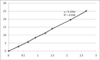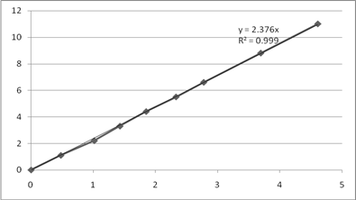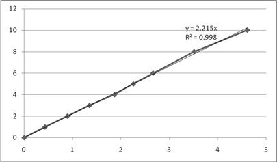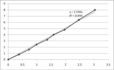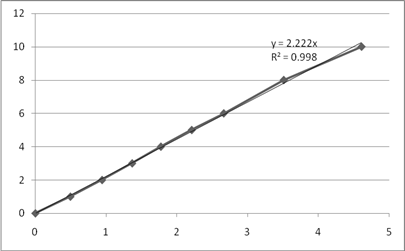 Порядок реакции по реагенту А2 определяем как тангенс угла наклона линии аппроксимации.