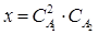 рассчитаем концентрации реагентов и значение x=CA12∙ CA2 по полиному