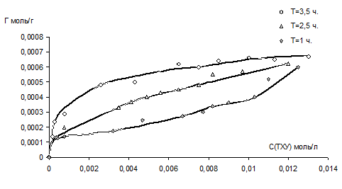 Рис.1.Кинетика адсорбции ТХУ (моль/г.) на монтмориллоните.