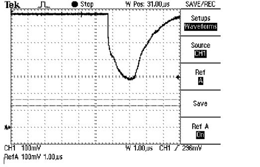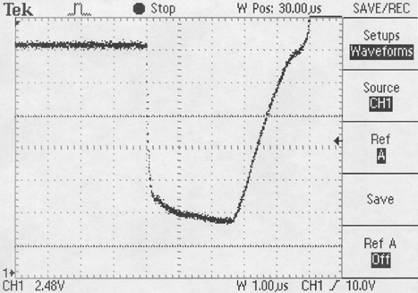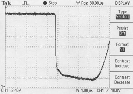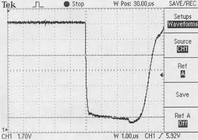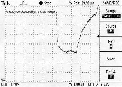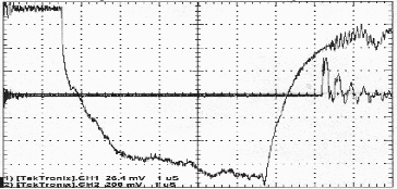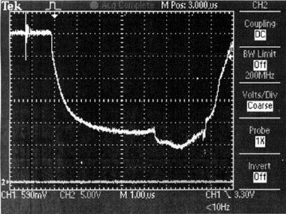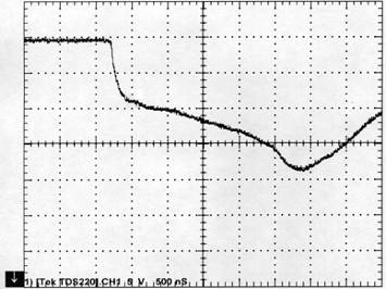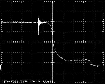 Осциллограмма эксперимента с насыпным октогеном при нормальной детонации с появлением и исчезновением электропроводности.