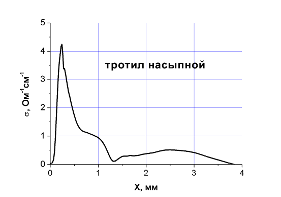Распределение электропроводности в насыпном тротиле при нормальной детонации.