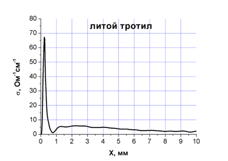 Распределение электропроводности в литом тротиле при нормальной детонации.