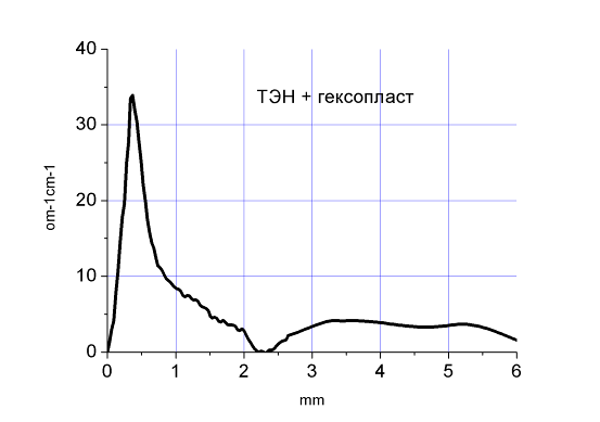 Осциллограмма эксперимента с насыпным гексогеном при пересжатой детонации.