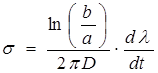 где b и а - диаметры наружного и внутреннего электродов, D - скорость детонации, измеряемая в каждом эксперименте, l - проводимость, величина обратная сопротивлению. Аналогичным выражением для получения электропроводности пользуются авторы [7].