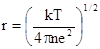 При максимально возможной плотности электронов n = 1017 см-3 расстояние между заряженными частицами aе = (n)-1/3 ≈ 2·10-6 см. Поскольку ae >> λ, электроны можно считать независимыми. Энергия взаимодействия зарядов друг с другом W = e2/ae ≈ 7·10-2 эВ < kT = 0,3 эВ. Электронный газ будем считать идеальным. Дебаевский радиус экранирования