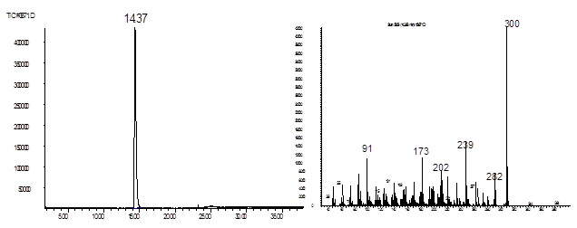 После проведения реакции мы получили трехкомпонентную смесь, из которой с 60 % выходом выкристаллизовывалось соединение 23. Оставшийся фильтрат по данным ГЖХ-МС состоял из смеси соединений 24 и 25 в соотношении 1:2 и примеси соединения 23. После отгона формамида и разбавления остатка водой выпадал осадок соединения 24 (М 303), а после экстракции водного раствора выделили соединение 25 с выходом около 2 %.
