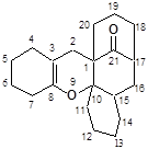 Данные спектра ЯМР 13С (d, м.д.) (наиболее характерные сигналы) [16]: четвертичные углероды, связанные с кислородом С22, С1 и С19 при 98.2, 96.1 и 79.0, четвертичный углерод С8 при 37.8, третичные углероды С6, С12, С14 при 41.1, 39.8, 39.6.