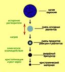 Рис.9. Схема получения кристаллического материала при ультразвуковом диспергировании и термической обработке растворов.
