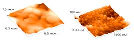 Рис.11. Структура поверхности пленок Li3Sc2–хFeх(PO4)3 (данные атомно-силовой микроскопии): а - х=2; б - х=0.5.