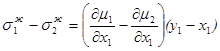 Так как сумма dx1+dx2=0, следовательно, dx1= -dx2 , а также у1-х1= -(у2-х2), получаем: