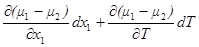 Для перехода к координатам функции g необходимо выразить d(μ1-μ2), как функции х1 и Т (Р=соnst)
