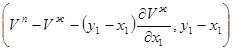 должно совпадать с направлением изотермо-изобары жидкой фазы. Следовательно, этот вектор не колинеарен вектору <Vп – Vж, y1 – x1>. Образно говоря, движущая сила этого смещения состава другая. Эта движущая сила должна лежать на касательной к изотермо-изобаре жидкости, то есть, проекция на ось абсцисс x, y остается при этом неизменной, а изменяется проекция на ось ординат V. Таким образом, векторы