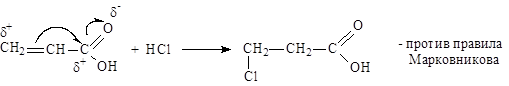 Взаимное влияние составляющих карбоксильную группу карбонила и гидроксила с одной стороны уменьшает поляризацию связей С=O карбонила, с другой стороны ослабляет связь О-Н гидроксила, что приводит к отсутствию реакций нуклеофильного присоединения AN и увеличению подвижности водорода гидроксила (кислотные свойства).