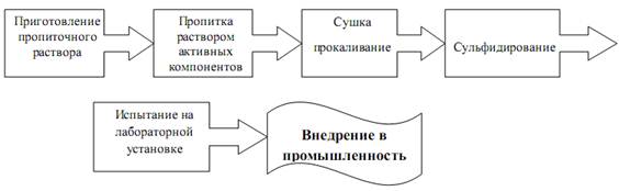 В результате многочисленных исследований процесса синтеза катализаторов гидрогенизационных процессов была предложена наиболее оптимальная схема синтеза: