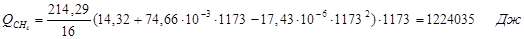 6.5. Найдем количество природного газа, которое необходимо затратить для подогрева исходной смеси, считая, что природный газ на 95% состоит из метана (состав природного газа зависит от месторождения, колеблется от 55-99%):