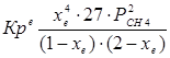 4.1. Рассчитаем равновесную степень превращения метана. При температуре от 827°С и составе исходной смеси СН4 : Н2О = 1 : 2 необходимо проводить процесс при абсолютном давлении 10 атм.