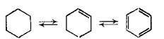 Механизм реакции дегидрирования циклогексана включает последовательное отщепление двух атомов водорода с образованием адсорбированного циклогексена. Предполагается, что эта стадия реакции - лимитирующая. Далее происходит отщепление одного за другим остальных четырех атомов водорода, в результате чего образуется бензол.