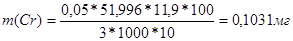 Исходя из полученной концентрации отобрали аликвоту 10 мл полученного раствора (в 10 мл содержится 5,252 мг хрома, что попадает в интервал 5-10 мг).