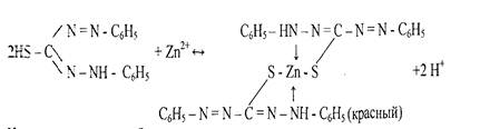 В результате реакции с катионами цинка возникает внутрикомплексное соединение, содержащее два дитизонатных аниона: