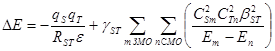 В уравнениях (31, 32) qS и qT – эффективные заряды на центрах S и Т, RST – расстояние между центрами в ходе взаимодействия, e – диэлектрическая проницаемость среды. Таким образом, первый член (возмущение 1го порядка) отражает энергию кулоновского взаимодействия. Второй член (возмущение 2го порядка) определяет энергию орбитального перекрывания и включает: gST – коэффициент, учитывающий заселенность электронами орбиталей c1 и c2,