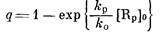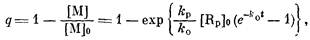 где [М] о — исходная концентрация мономера. Отсюда следует, что предельный выход полимера q (q при £>1), образовавшегося после достижения максимума скорости полимеризации, описывается следующим уравнением: