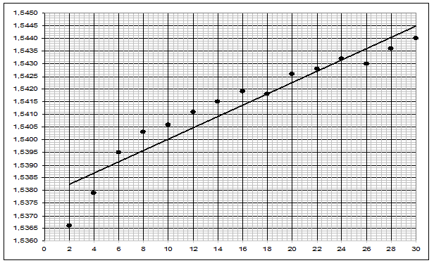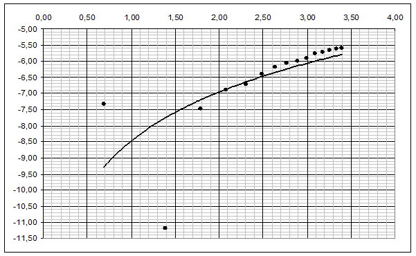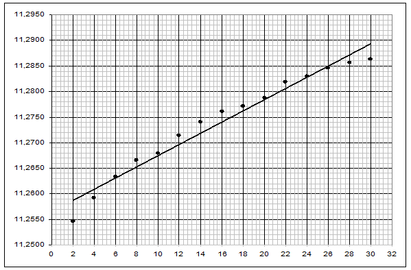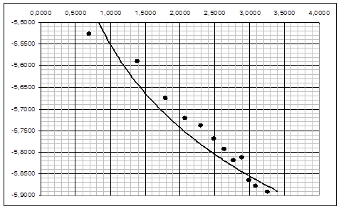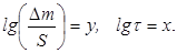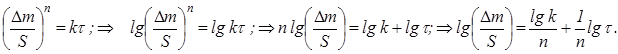 2.3. Построили график lg Δm/S=f(lg τ) (рис. 3), определили коэффициенты логарифмического уравнения и выразили через них закон роста оксидных пленок: