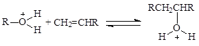 Координированный таким образом R+ аналогичен иону карбения в ионе алкоксония R3O+BF4– и может участвовать в реакциях с другими реагентами (олефинами, спиртами, аренами) аналогично реакциям алкоксониевых ионов в реакции полимеризации циклов (см. раздел 11). Ионы карбония могут находится в свободном состоянии, удерживаясь на поверхности за счет слабых водородных связей или за счет электростатических сил в виде ионных пар RH2+·X–.