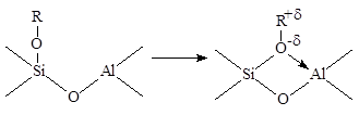 Кристаллическая структура цеолитов характеризуется сквозными порами одинакового диаметра (0.75 – 1.0 нм), превышающими размеры многих молекул углеводородов. При замене части ионов Na+ на ионы NH4+ и последующей прокалки на поверхности цеолита образуются сильные протонные центры