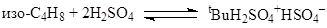 Реакции алкилирования – процессы обратные крекингу – занимают важное место в нефтехимии и в органическом синтезе. Реакции алкилирования используют для получения ценных компонентов моторных топлив, повышающих их октановые числа. Для получения алкилатов используют реакции алкилирования парафинов олефинами. Так, изобутан алкилируют изобутиленом и смесью изомерных бутиленов, а также пропиленом. Реакцию проводят в двухфазной системе – концентрированная H2SO4 (90 – 97%) - углеводороды в присутствии ПАВ (R4N+X–, цетиламин, октиламин). Процесс является цепным и включает следующие типичные для кислотного катализа стадии. В концентрированных кислотах сольватация карбкатиона осуществляется молекулой кислоты