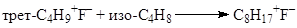 Сольватированный tBu+ взаимодействует со второй молекулой олефина с образованием димерного карбкатиона. Для упрощения изобразим схему реакций с участием свободных R+: