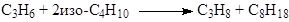 Брутто-реакция представляет собой дегидродимеризацию изобутана с переносом 2 атомов водорода на пропилен:
