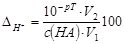 В КТТ рН = рТ, т.е. [H+] = 10-pT, следовательно, в этот момент c(HA) неот = [H+] КТТ = 10-pT; обозначим c(HA) от ≈ c(HA) исх = с(HA), V(HA) неот = V(HA) исх+V(MOH) ККТ = V2, а V(HA) от≈V(HA) исх=V1.