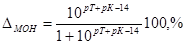 В КТТ n(MOH) от >> n(MOH) неот, следовательно, n(MOH) неот в знаменателе можно пренебречь тогда