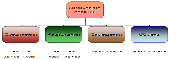 Как видим, существует различные способы классификации химических реакций, из которых более подробно мы рассмотрим следующие.