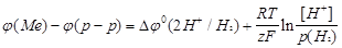 . Разность внутренних потенциалов для водородного электрода в соответствии с формулой Нернста равна: