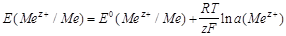 Их электродный потенциал согласно формуле Нернста, с учетом того, что активность твердой фазы при данной температуре равна единице, можно записать так:
