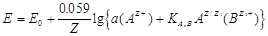 в величину электродного потенциала. Чем меньше К, тем меньше влияние посторонних ионов на мембранный потенциал, тем больше селективность мембранного электрода. С учетом коэффициента селективности величину мембранного потенциала рассчитывают по формуле Никольского: